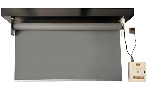 连接电源线和控制线,将福海挡烟垂壁安装在支架上,并用螺丝固定。